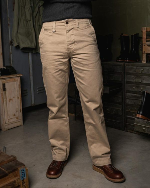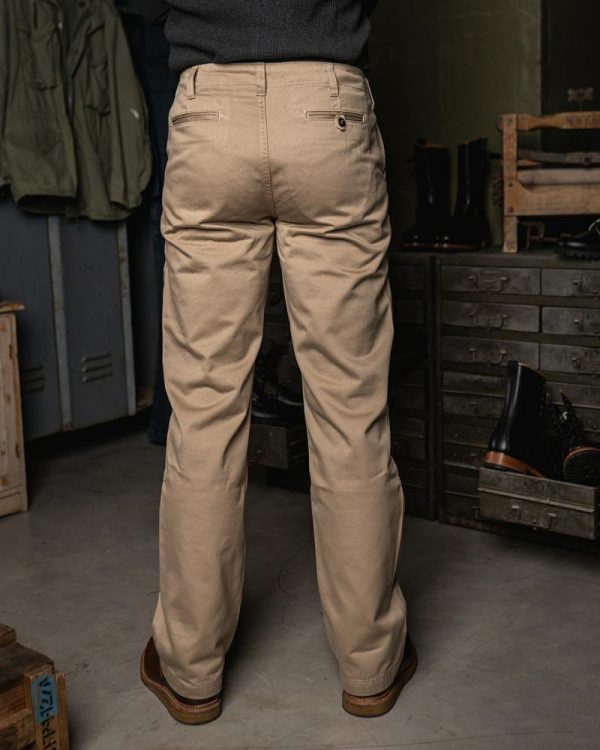 Authentische Chino der U.S.Army wie sie in den 1940er Jahren getragen wurde. Bequeme Passform und ein höherer Bund machen die Hosen zu einem Kleidungsstück für den täglichen Gebrauch.
