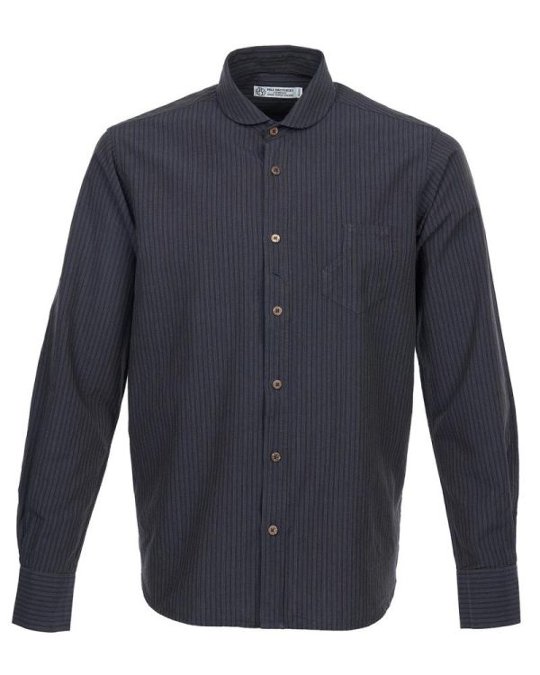 Unser 1908 Miner Shirt ist ein Arbeitshemd, wie es um die Jahrhundertwende des letzten Jahrhunderts getragen wurde. Arbeitshemden dieser Zeit hatten meist einen halbrunden Kragen und eine asymmetrische Brusttasche für eine Taschenuhr. Damit die Taschenuhr nicht verloren ging, konnte man die Kette an einem zusätzlichen Knopfloch am Hemd sichern. Diese Details besitzt auch unser 1908 Miner Shirt. Den Stoff lassen wir von einer alten portugiesischen Weberei nach einer alten Rezeptur weben. Der Stoff ist aus 100% Baumwolle, schön robust und pflegeleicht.