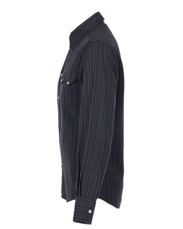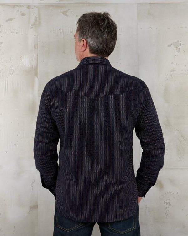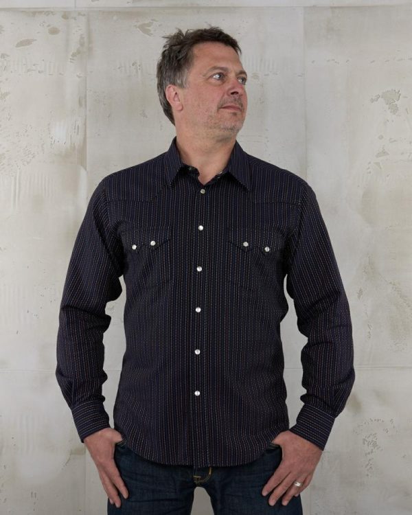 Unser 1963 Sawtooth Shirt ist ein klassischer Vertreter der Westernhemden aus den 1960er Jahren. Wie für die Westernhemden typisch hat das Hemd einen Körperbetonten Schnitt, verstärke Schultern und die Taschenklappen mit einer Sägezahnform. Daher auch der Name.