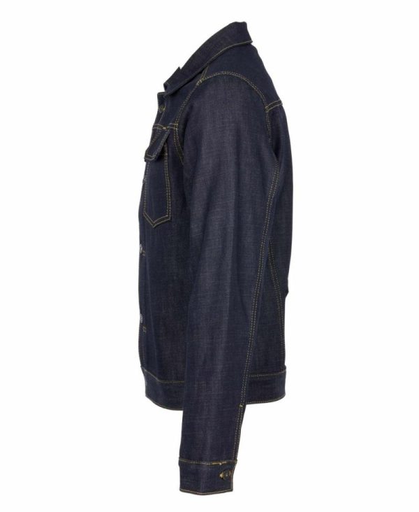 Bei unserer 1958 Roamer Jacket handelt es sich um eine klassische Denimjacke, wie sie Mitte bis Ende der 50er Jahre getragen wurde. Die kurzen und eng geschnittenen Jacken waren bei Cowboys besonders beliebt, da sie für das Reiten konzipiert wurden. Unsere Version hat zeitgenössischen Details wie den kürzeren Schnitt, den Expansionsfalten an der vorderen Knopfleiste und den typischen Verstellriegel auf der Rückseite.