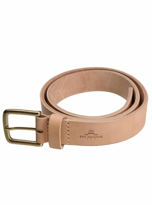 Die massive Gürtelschnalle aus Messing ist schwer vernäht und das geprägte Pike Brothers Logo runden das Bild ab.