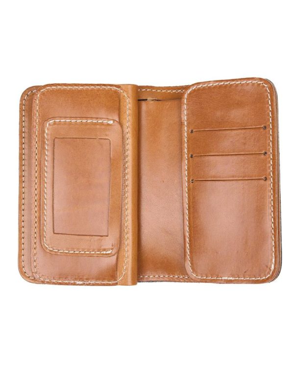 Klassischer großer Wallet mit two tone Leder. Der Wallet bietet ein großes Innenfach für Scheine, ein Münzfach, 6 Kreditkartenslots sowie Fächer für ID und Visitenkarten.