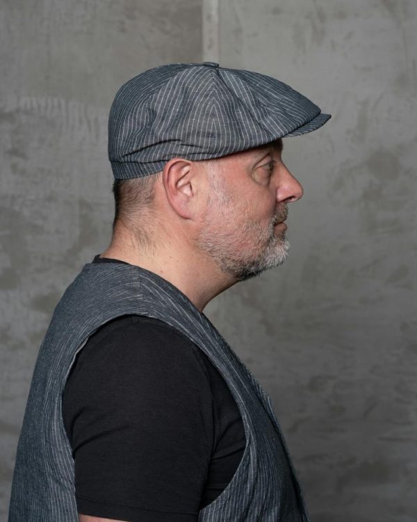 Pike Brothers Newsboy Caps | Newsboy Cap Grey Striped Linen Men