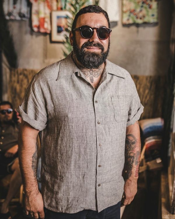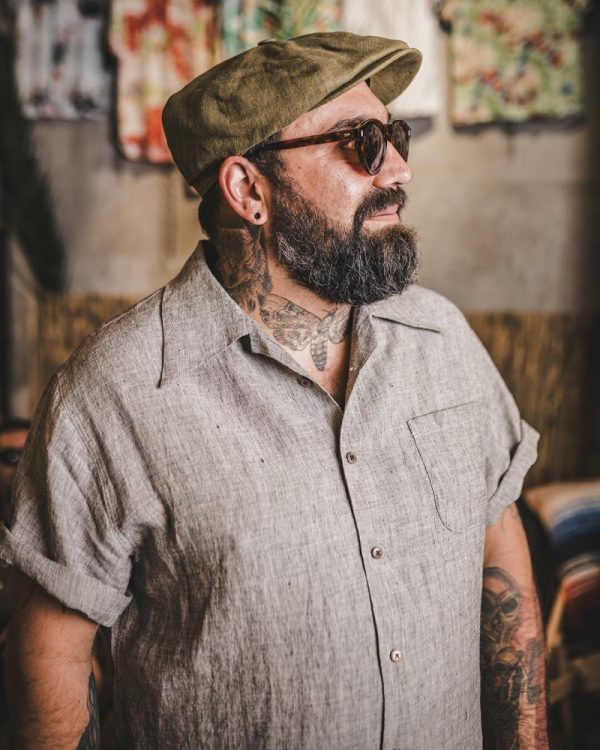 Das 1947 Albert Shirt ist ein Vertreter der 40er Jahre Sommerhemden. Der Schnitt ist ein klassischer Box fit mit breitem Kragen. Eine Brusttasche und Knopfschlaufe am Revers zeugen davon.
