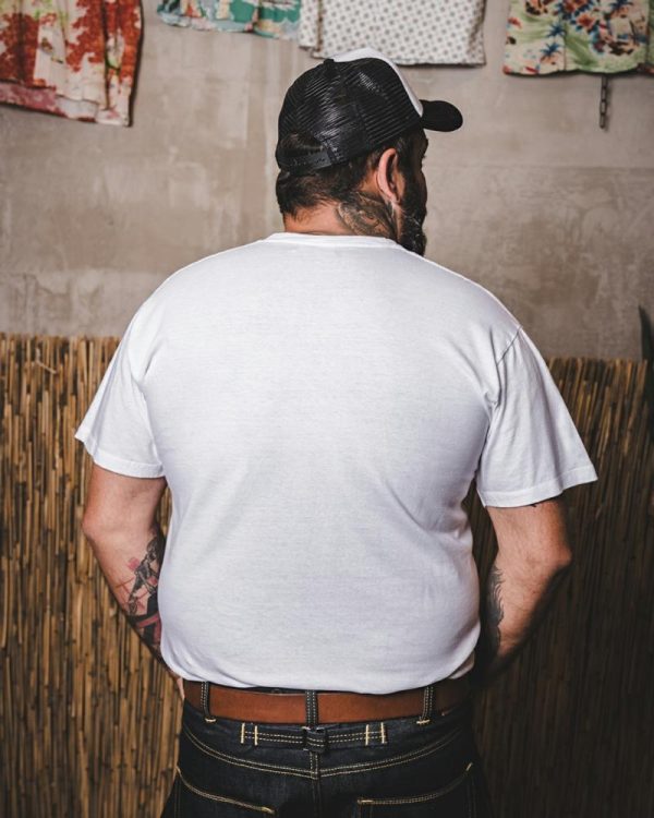 Das 1965 V-Neck T-Shirt ist ein Teil aus unserer Tubular Knit oder Rundstrick Serie. Unterwäsche wie T- Shirts wurde bis in die 1970er Jahre auf alten Rundstrickmaschinen gefertigt. Während der Produktion wird ein Schlauch gestrickt, der dann in weiteren Arbeitschritten geschnitten und mit Ärmeln etc. versehen wird.