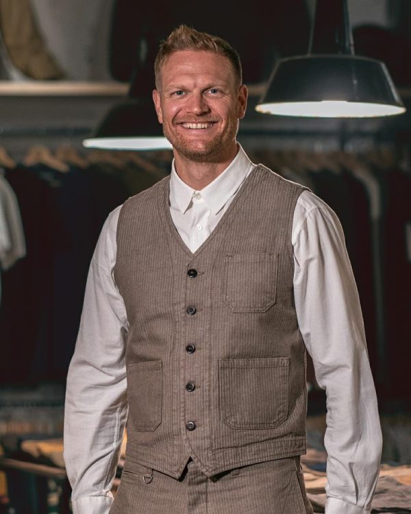Die 1937 Roamer Vest ist eine Arbeitsweste aus den 1930er Jahren. Wie die Jahreszahl vermuten lässte, hat die Westen ihren Ursprung im 20.Jahrhundert. Damals wurden Westen getragen, um dem Oberhemd Schutz vor Schmutz und Beschädigungen zu bieten. Der Schnitt ist körperbetont und gerade. Drei Taschen außen und eine Tasche innen runden das Bild ab.